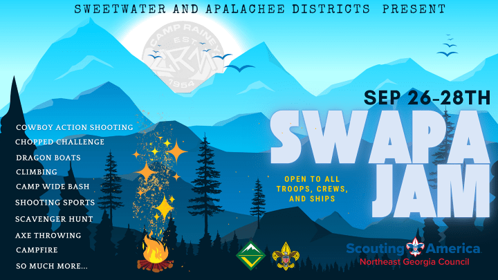 Join the fun at our Area wide Jamboree-style camping event at Camp Rainey Mountain. Get in early to reserve your campsite and have some camp fun! Our Youth SWAPA staff are ready to host an amazing weekend filled with activities for every Scout!